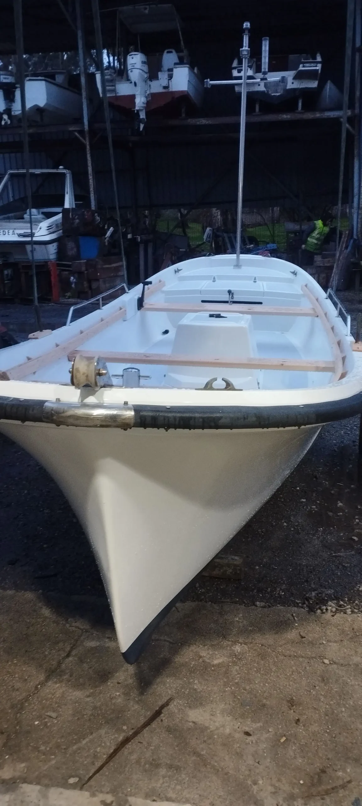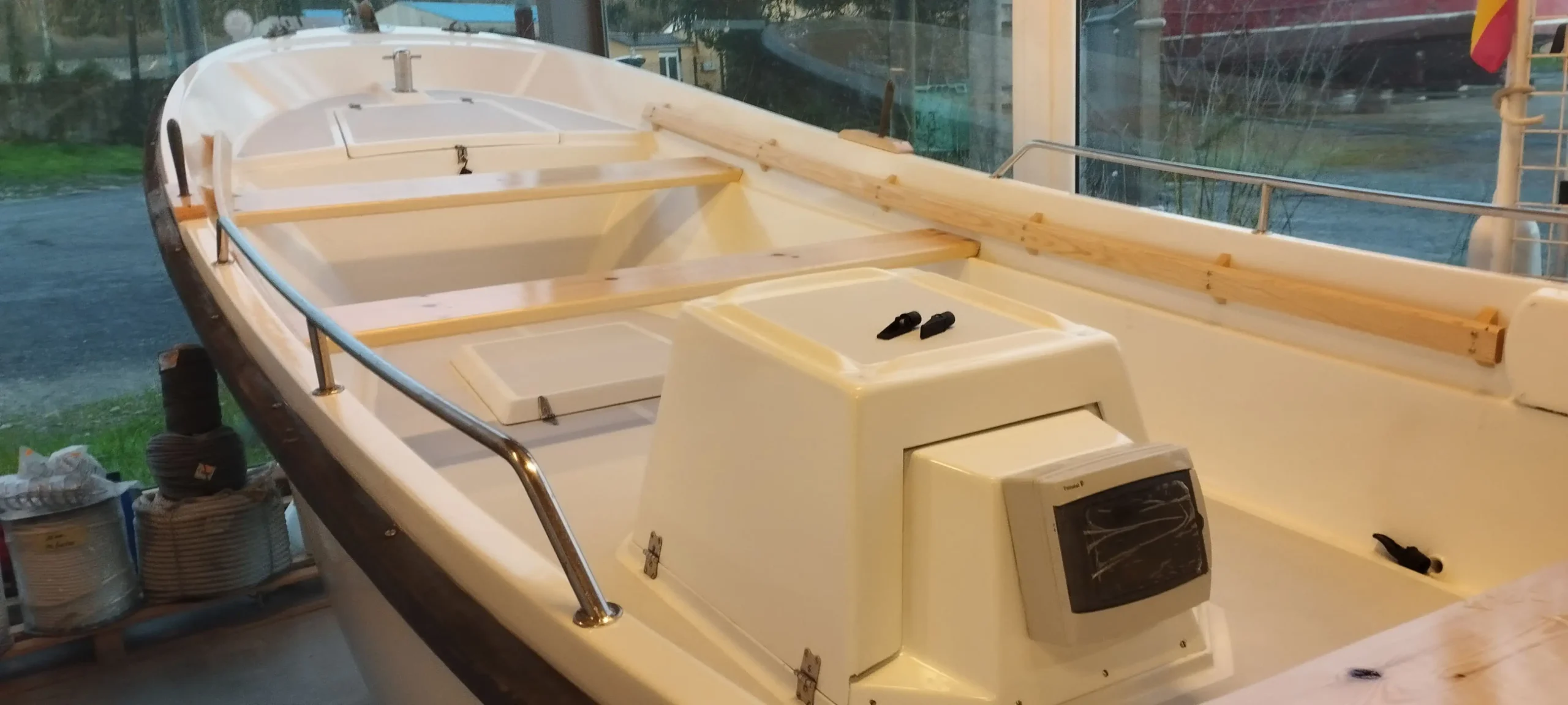 • Carpintería Naval: Sustitución total de las maderas. Hemos instalado nuevas vagras y bancadas, asegurando la solidez estructural y estética que este barco merece.